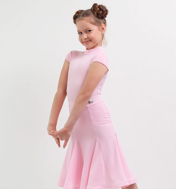 Боди, из итальянского бифлекса высочайшего качества, с воротником стойкой и маленьким втачным рукавом-крылышком, в дуэте с юбкой-годе, создают очень лаконичный образ маленькой танцовщицы. Юбка, прекрасно скроена, подчеркивает фигуру, вытягивает силуют , и позволяет выполнить любые танцевальные движения, а объем ей придает регилин. Прекрасно дополняет это платье нежный цвет розового пиона. А точный крой и идеальная посадка обеспечивают комфорт и удобство.